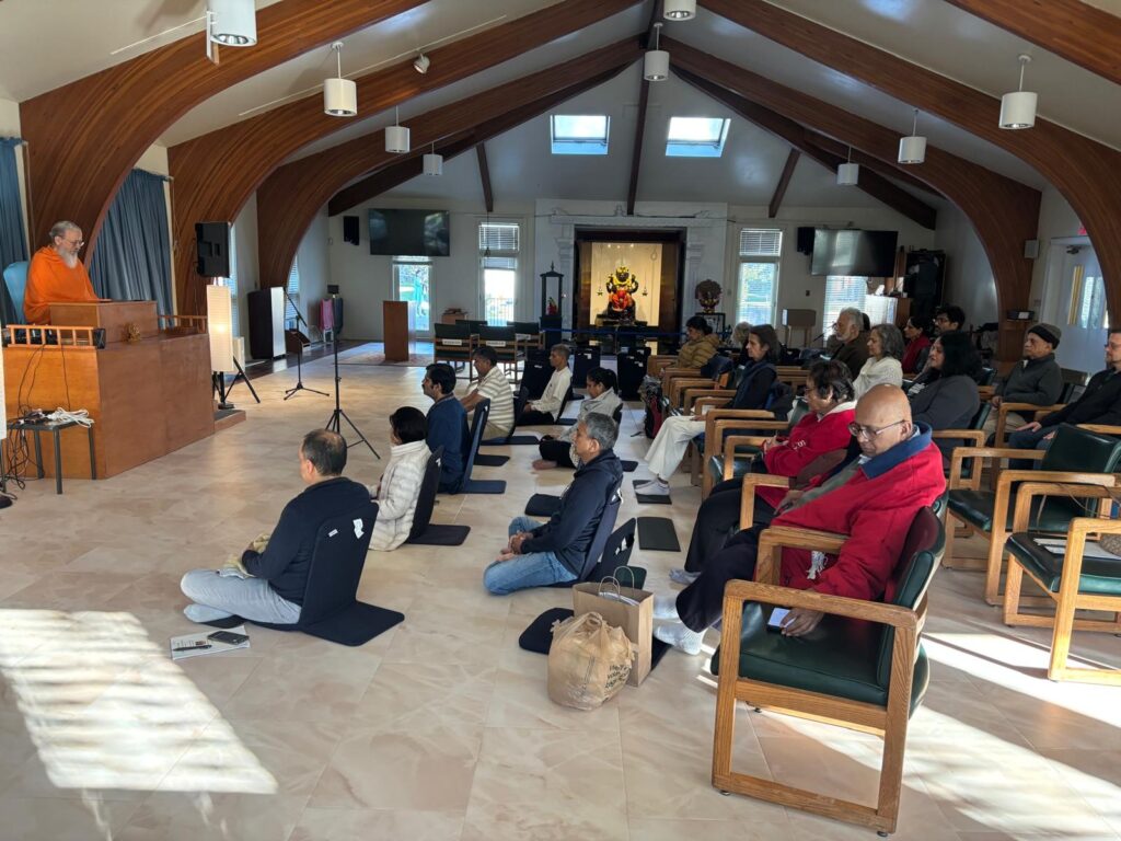 Swami Advayatmananda unfolded these verses with characteristic humor, clarity, and depth – blending Sanskrit analysis, scriptural reference, and practical Vedāntic guidance. The emphasis throughout was on the classical process of śravaṇa, manana, and nididhyāsana – listening, reflection, and contemplation – as the means to Self-recognition.